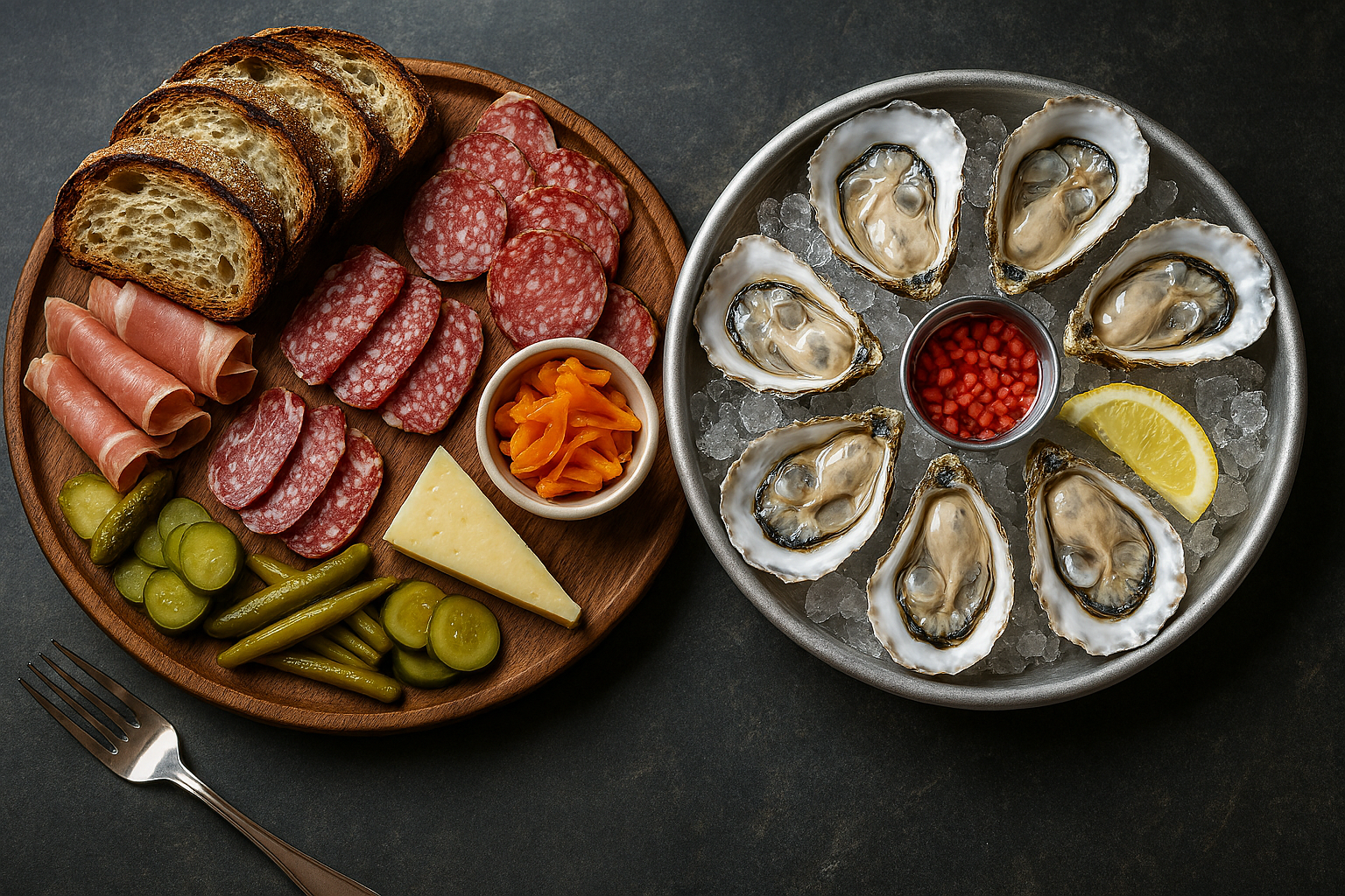 Selection of cured British meats, house pickles, and sourdough